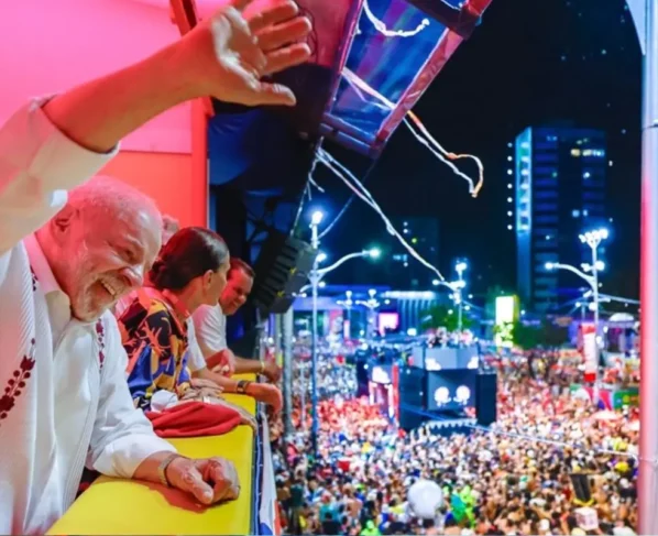 O presidente Lula compartilhou vídeo nas redes sociais em que aparece pulando num camarote do carnaval de Salvador, na Bahia. Ele assistiu ao show da banda BaianaSystem no circuito Osmar.