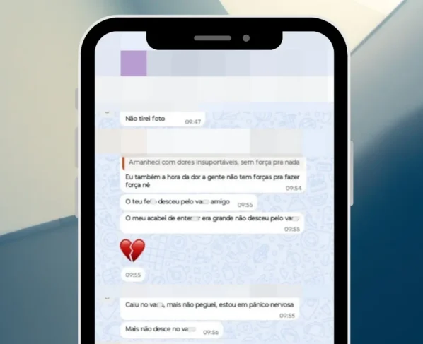 “O teu feto desceu pelo vaso. O meu acabei de enterrar. Era grande, não desceu pelo vaso”, narra uma pessoa no grupo. “Caiu no vaso, mas não peguei, estou em pânico, nervosa”, disse outra. Em mais relatos, uma participante revela que sentiu uma dor “insuportável” por duas horas após o uso do medicamento. “Saiu meninas. Depois de horas e horas com dor, saiu. O feto inteiro. Agora não sei o que fazer com ele, porque já está grande”, detalhou mais uma participante. “Eu não sangrei nada. Só um pouquinho, faltando cinco minutos para sair, mais ou menos.”